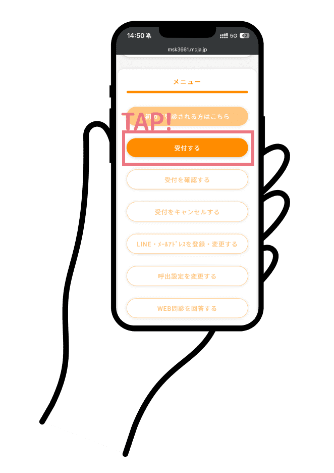 この受付システムは、来院される皆様の待ち時間短縮のために導入しております。できるだけ順番や予約時間通りにご来院いただきますようご協力をお願いいたします。
