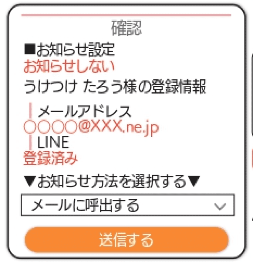 「お知らせ設定を変更する」で、メールまたはLINEでのお知らせ方法を選択することができます。
